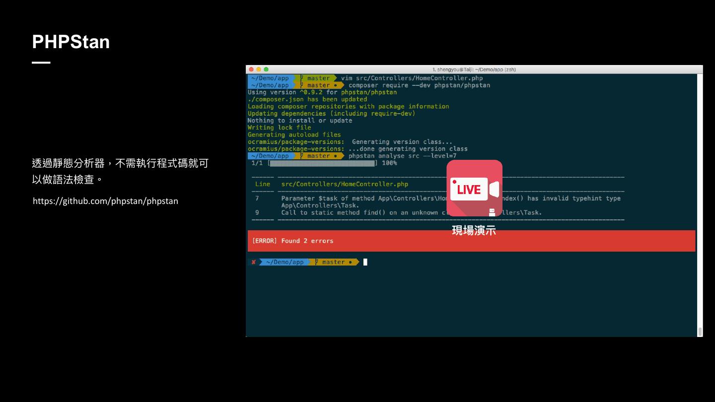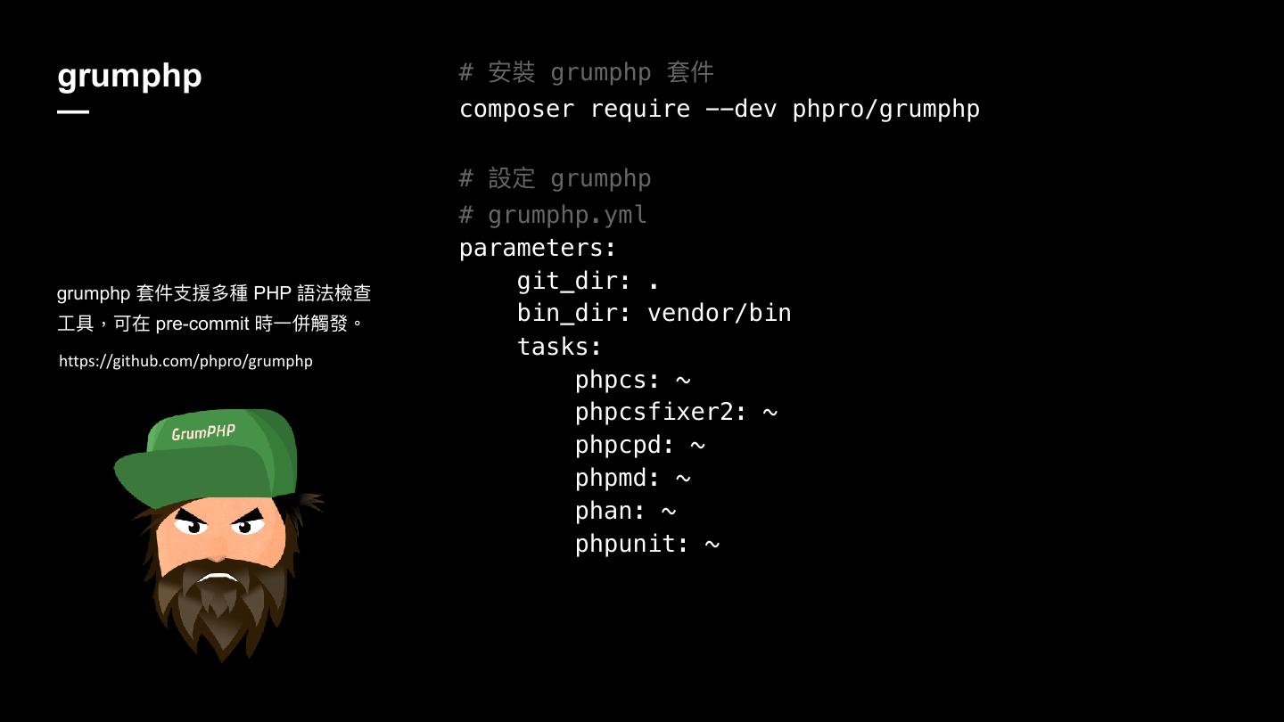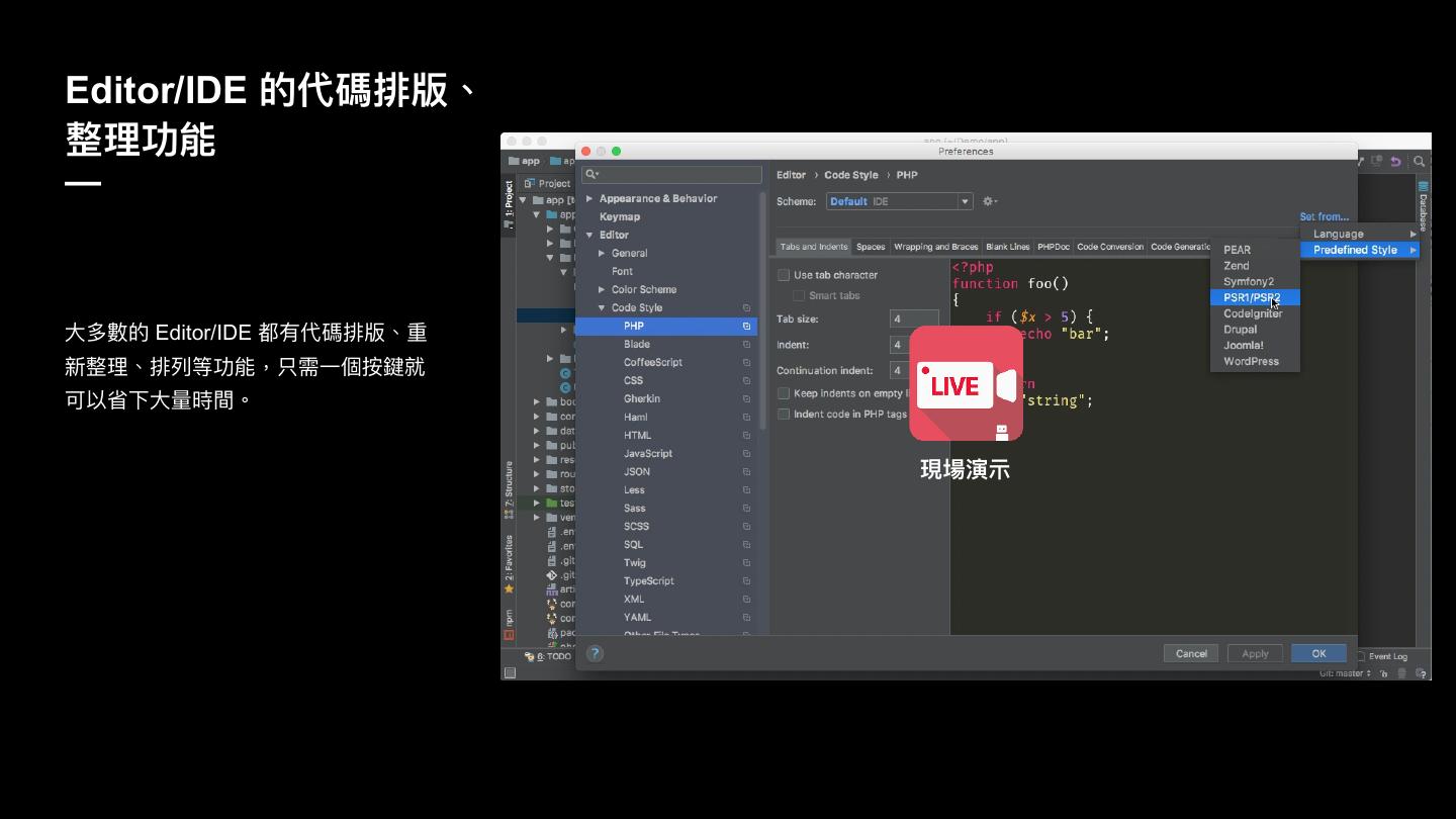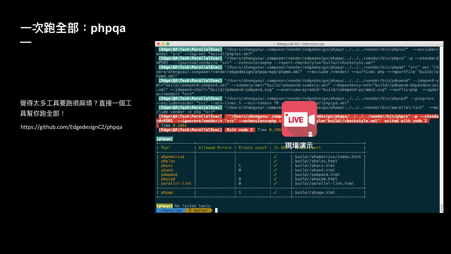 PHP直译式、弱型别、动态转型等特质,虽然在开发上方便且有极大的弹性,但在中大型专案开发时,往往造成团队合作上的困难。因此,建立撰码规范、使用语法产生器、检查器及除错工具等,将可以有效提升开发效率及产能。甚至更进一步,若能适度的导入测试、源码分析、持续整合等工作流程,势必对团队合作更有助益。在这场分享里,将介绍如何整合开发生态系里的撰码工具,来协助开发者高效产出有品质的程式码。除了当个团队里的好孩子外,也能更有自信的交付,或是在夜晚睡个好觉 :)