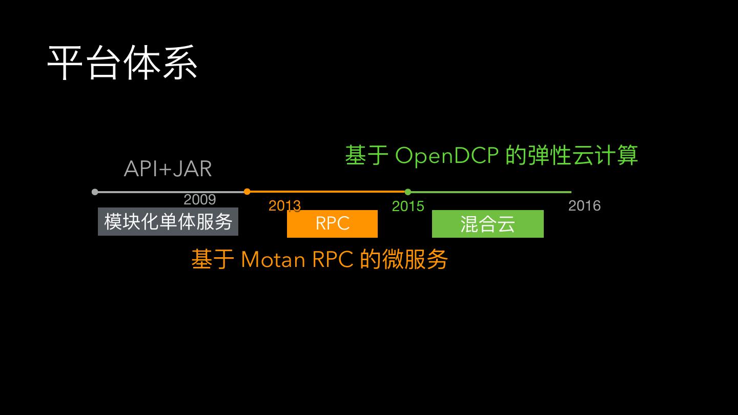 6 .平台体系 चԭ OpenDCP ጱ୨ԯᦇᓒ API+JAR 2009 2013 2015 2016 ཛྷࣘ۸֛ܔ๐ۓ RPC Ⴐݳԯ चԭ Motan RPC ጱங๐ۓ