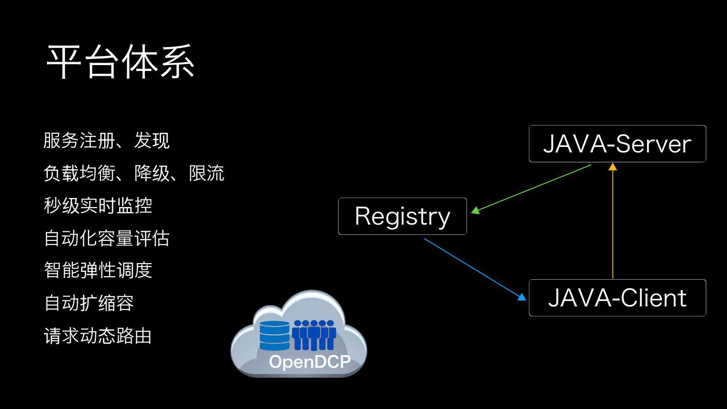 7 .平台体系 服务注ٙ、发ሿ JAVA-Server ᨮ均衡、降ᕆ、限流 秒ᕆ实ፊ控 Registry 自动化容量ᦧ估 智能୨性᧣度 自动ಘᖽ容 JAVA-Client ᧗求动ா路由 OpenDCP