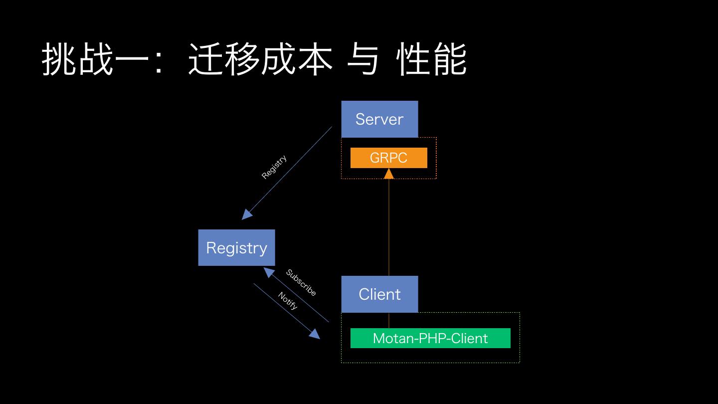 12 .挑战一:迁移成本 与 性能 Server GRPC y tr is eg R Registry Su bs cr ib No tif e Client y Motan-PHP-Client