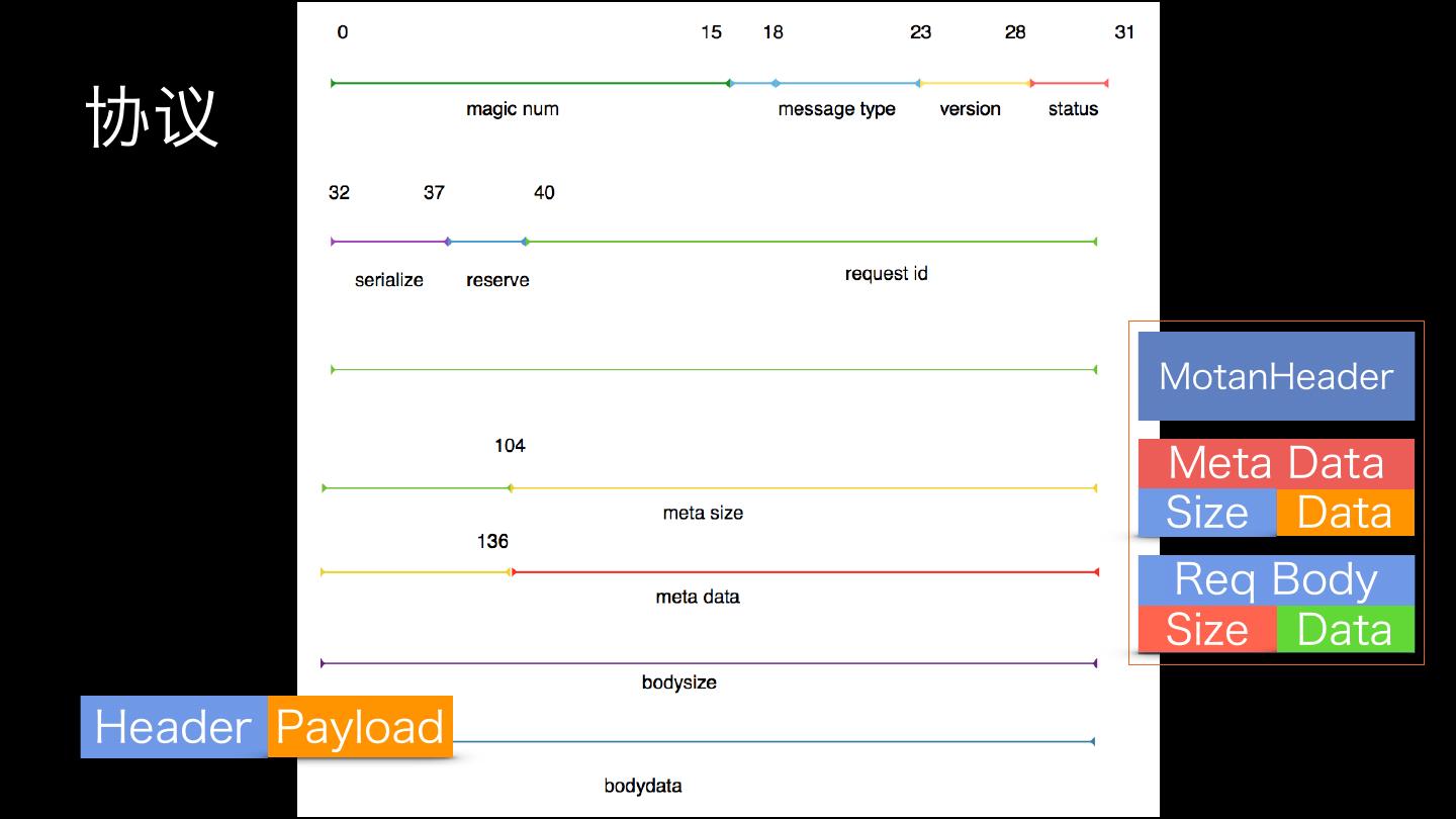 18 .协议 MotanHeader Meta Data Size Data Req Body Size Data Header Payload