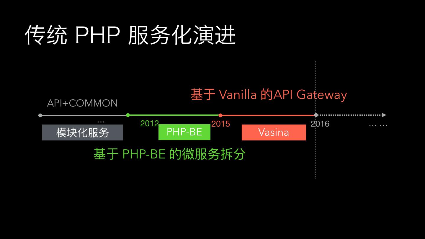 29 .传统 PHP 服务化演进 चԭ Vanilla ጱAPI Gateway API+COMMON … 2012 2015 2016 …… ཛྷࣘ۸๐ۓ PHP-BE Vasina चԭ PHP-BE ጱங๐ۓೆړ