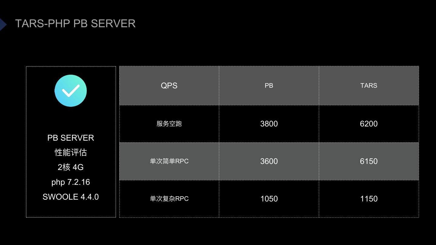 24 .TARS-PHP PB SERVER QPS PB TARS 3800 6200 PB SERVER RPC 3600 6150 2 4G php 7.2.16 SWOOLE 4.4.0 RPC 1050 1150