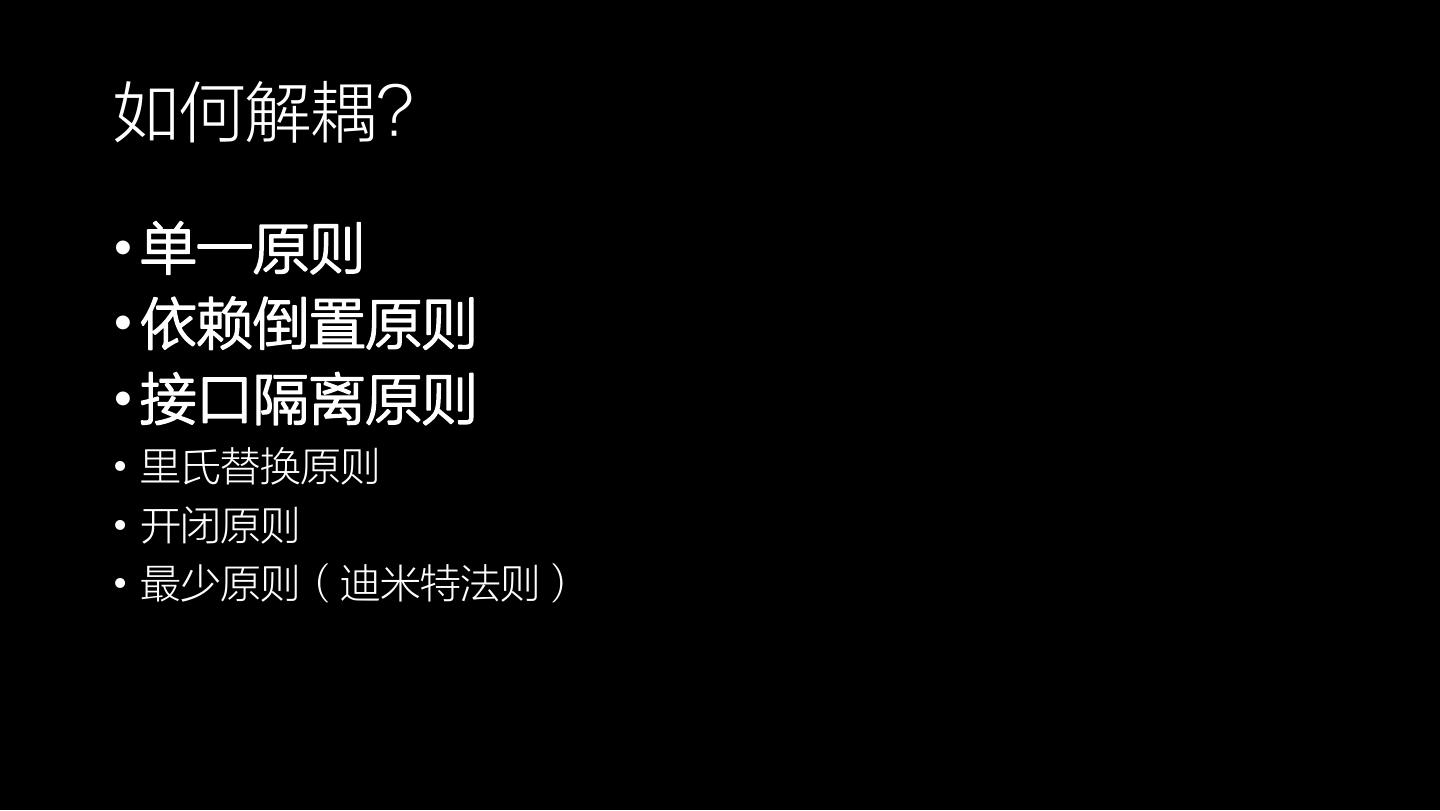 1、何为解耦? 2、何为IoC和DI?如何通过DI解耦代码? 3、何为观察者模式?如何通过观察者模式解耦代码? 4、何为策略模式?如何通过策略模式解耦代码? 5、何为AOP?如何通过AOP解耦代码?