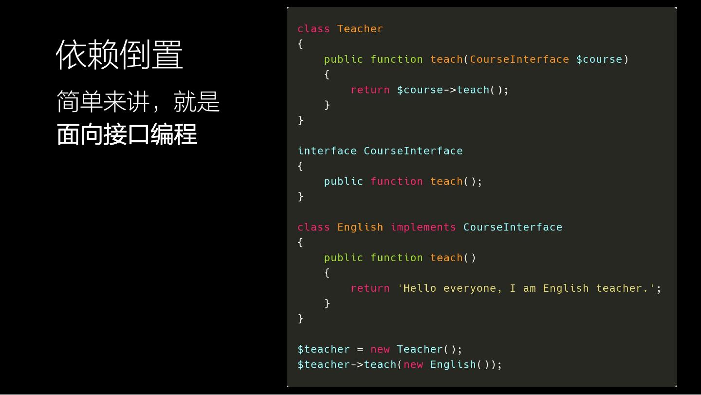17 .依赖倒置 简单来讲,就是 面向接口编程