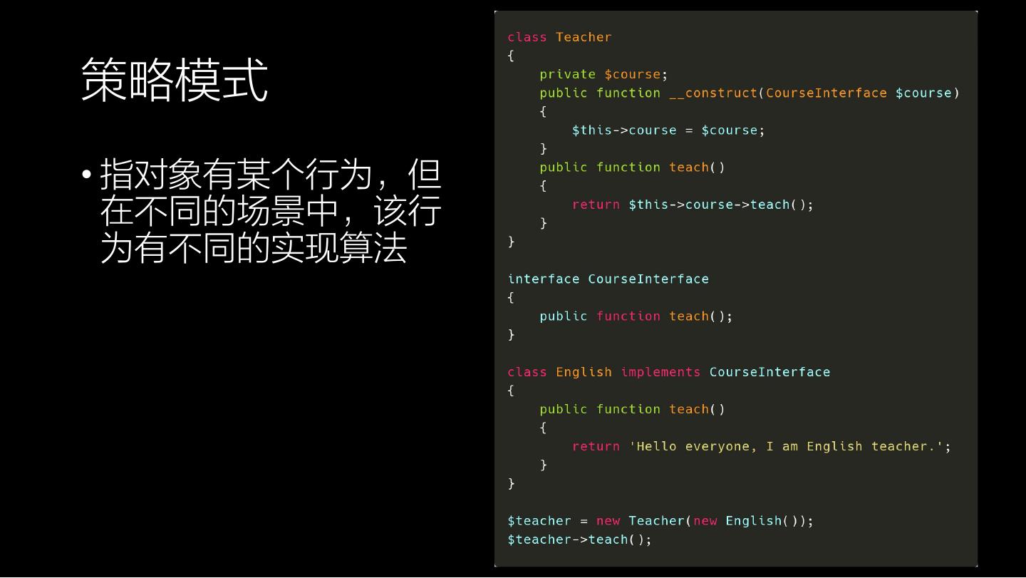19 .策略模式 • 指对象有某个行为,但 在不同的场景中,该行 为有不同的实现算法