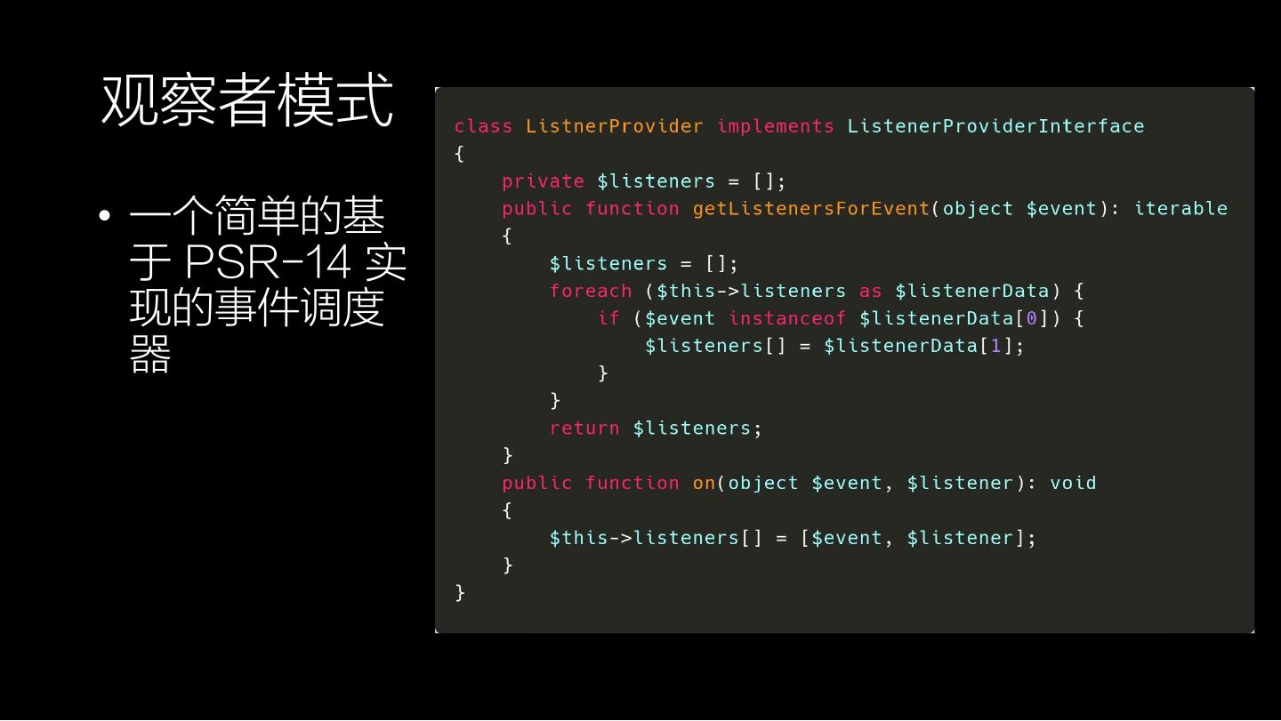 27 .观察者模式 • 一个简单的基 于 PSR-14 实 现的事件调度 器