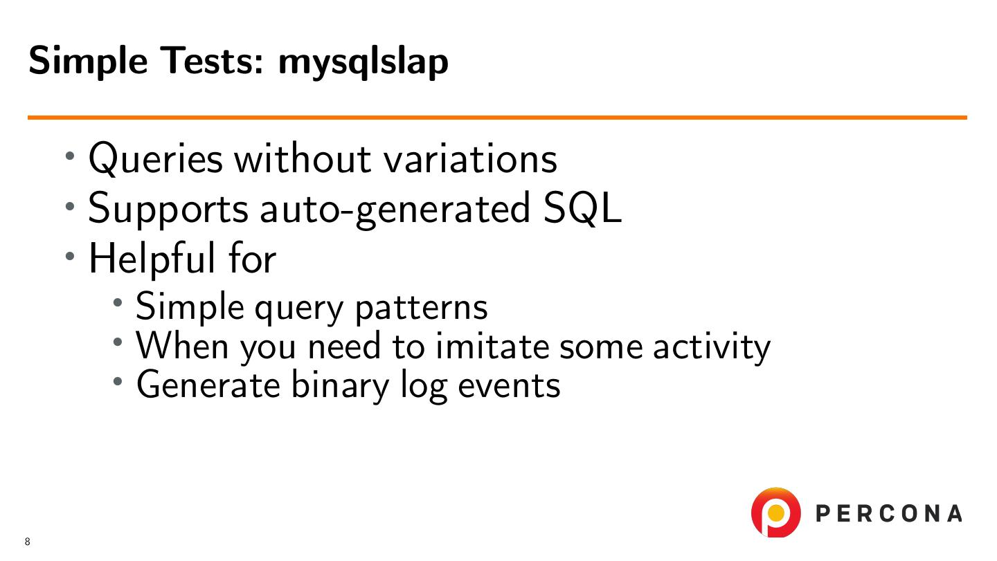 在这个网络研讨会中,我将介绍一些我使用的主要工具,例如(但不限于)SysBench和Mysqlsap。我将演示如何在处理特定自定义问题时使用它们的标准选项,以及如何编写脚本来开发尽可能接近真实场景的测试用例。