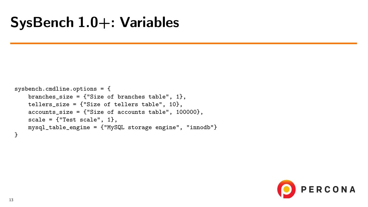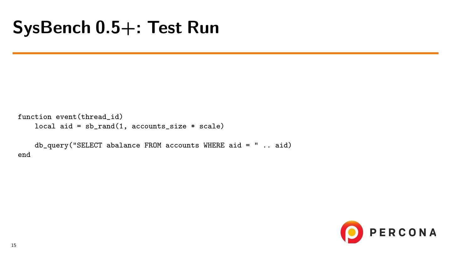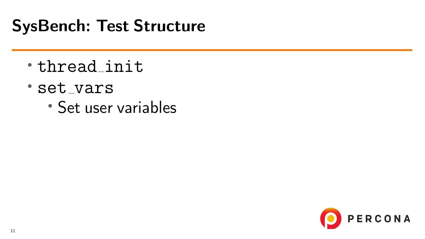 28 .SysBench: Test Structure • thread init • set vars • Set user variables 11