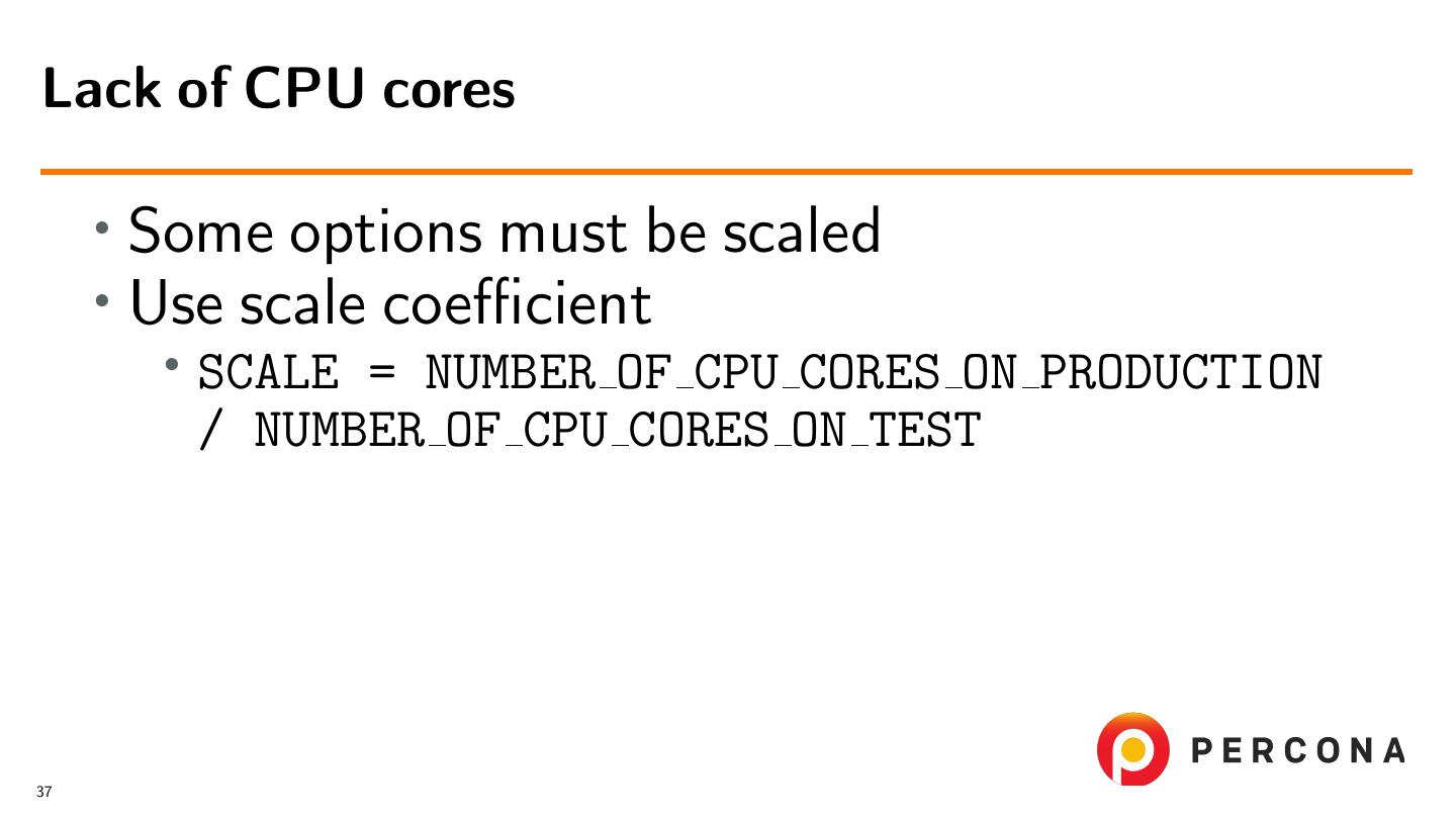 12 .Single Thread Issues: MySQL CLI • Benchmarking tool by nature mysql> SELECT id, k FROM sbtest2 WHERE id=5014; +------+------+ | id | k | +------+------+ | 5014 | 3972 | +------+------+ 1 row in set (0.16 sec) • Access to • Status variables • Engine status • Performance Schema 6 • All internal troubleshooting tools