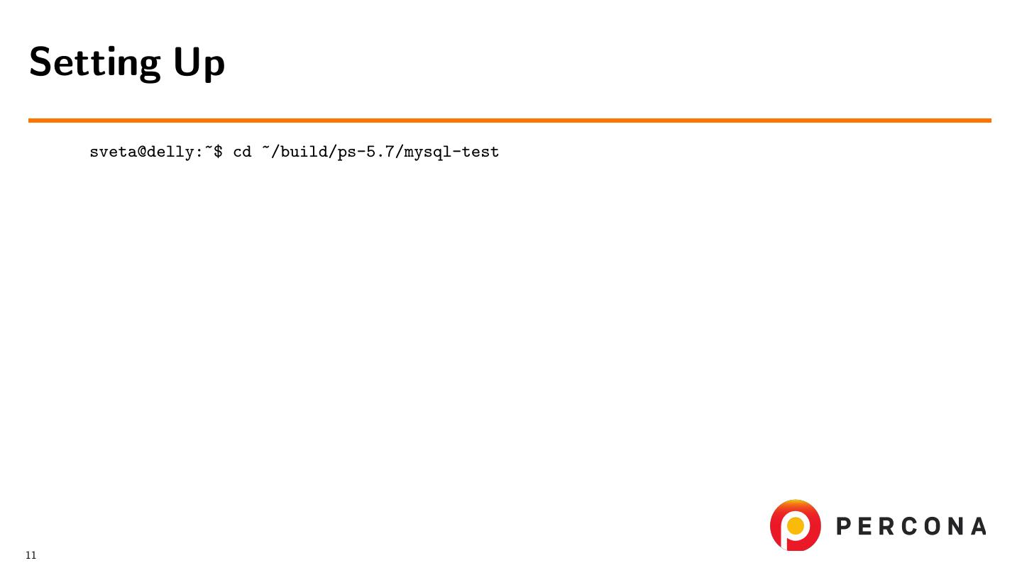 28 .Setting Up sveta@delly:~$ cd ~/build/ps-5.7/mysql-test 11
