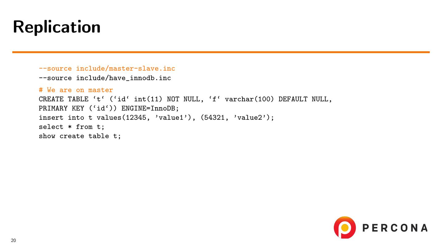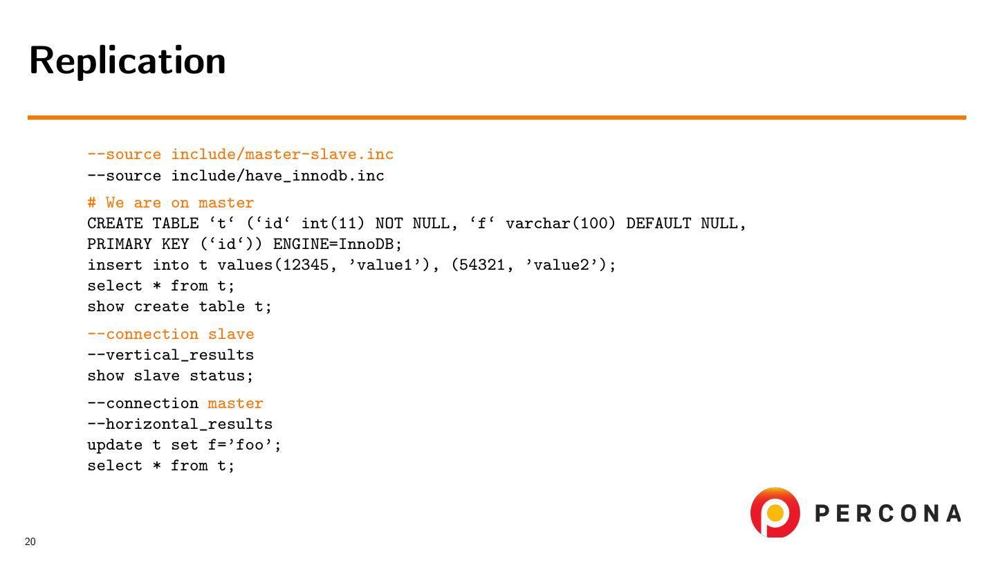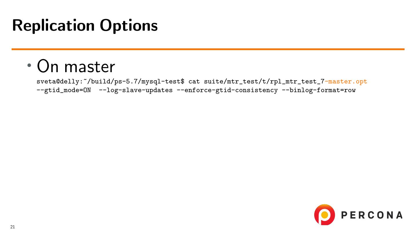 2 .Code Examples https://github.com/svetasmirnova/mtr_test 2