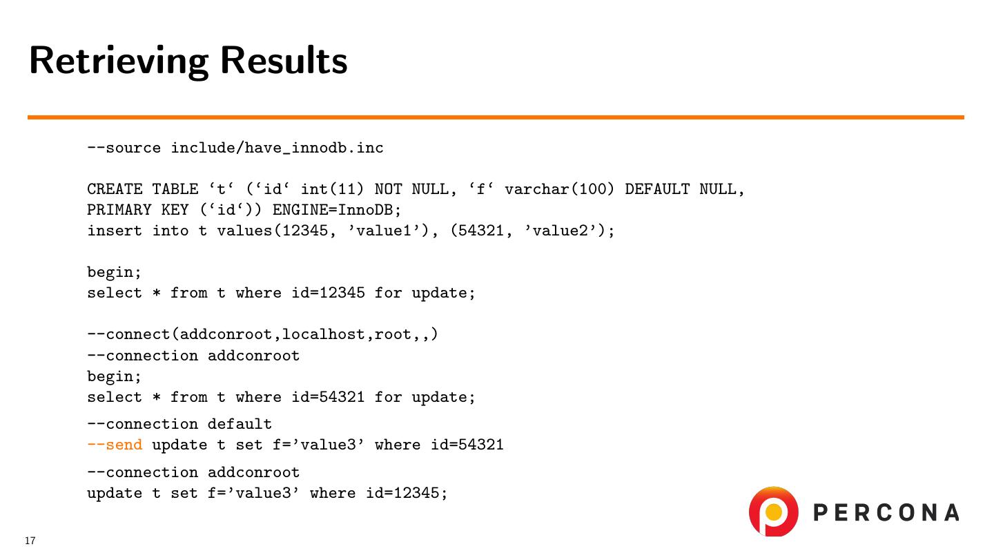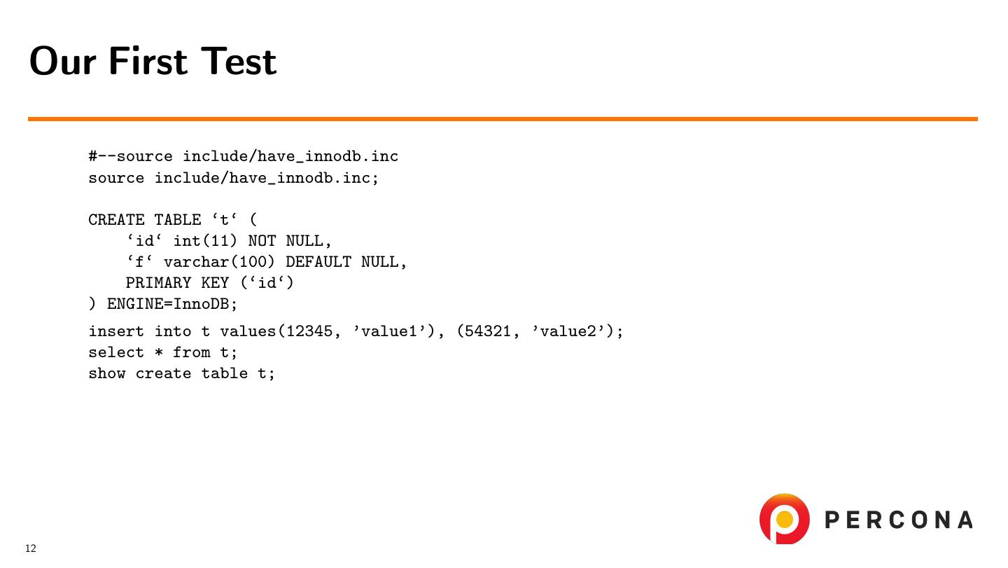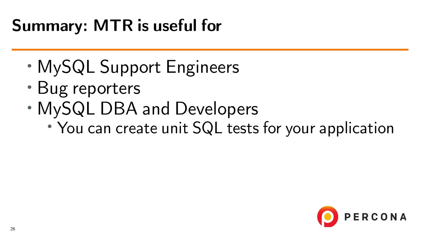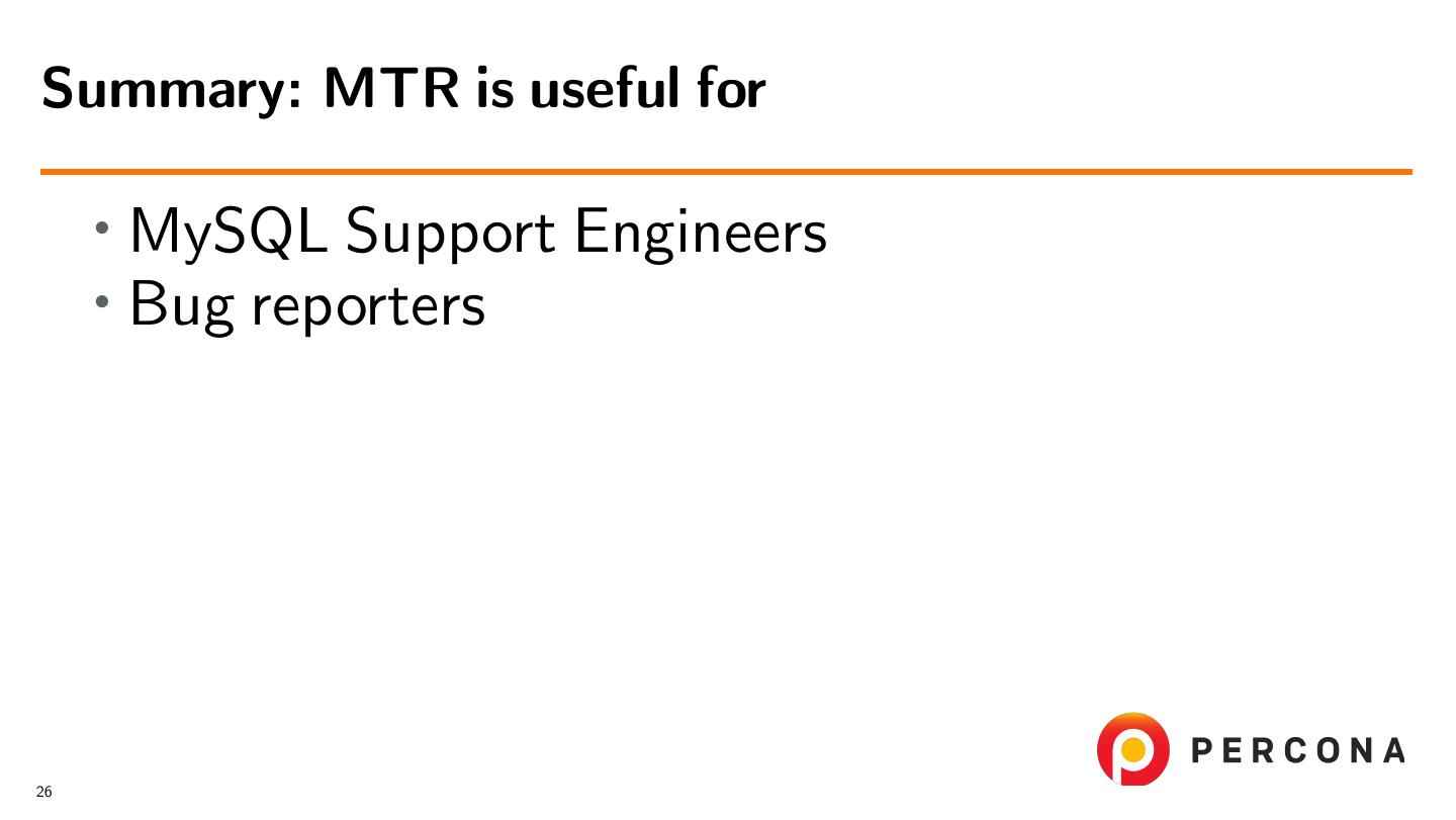 2 .Code Examples https://github.com/svetasmirnova/mtr_test 2