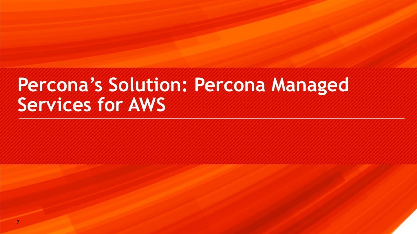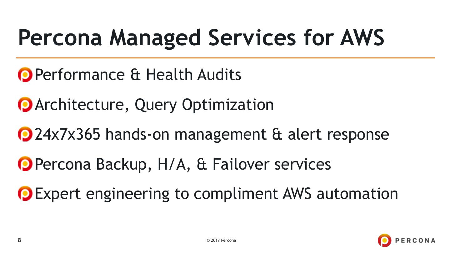 7 .Percona’s Solution: Percona Managed Services for AWS 7 © 2017 Percona