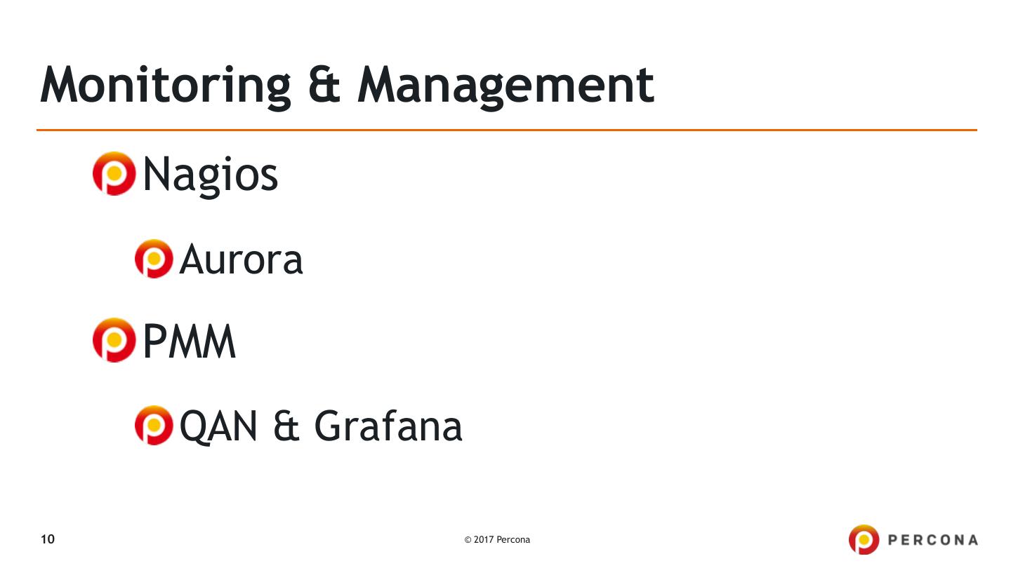 10 .Monitoring & Management Nagios Aurora PMM QAN & Grafana 10 © 2017 Percona