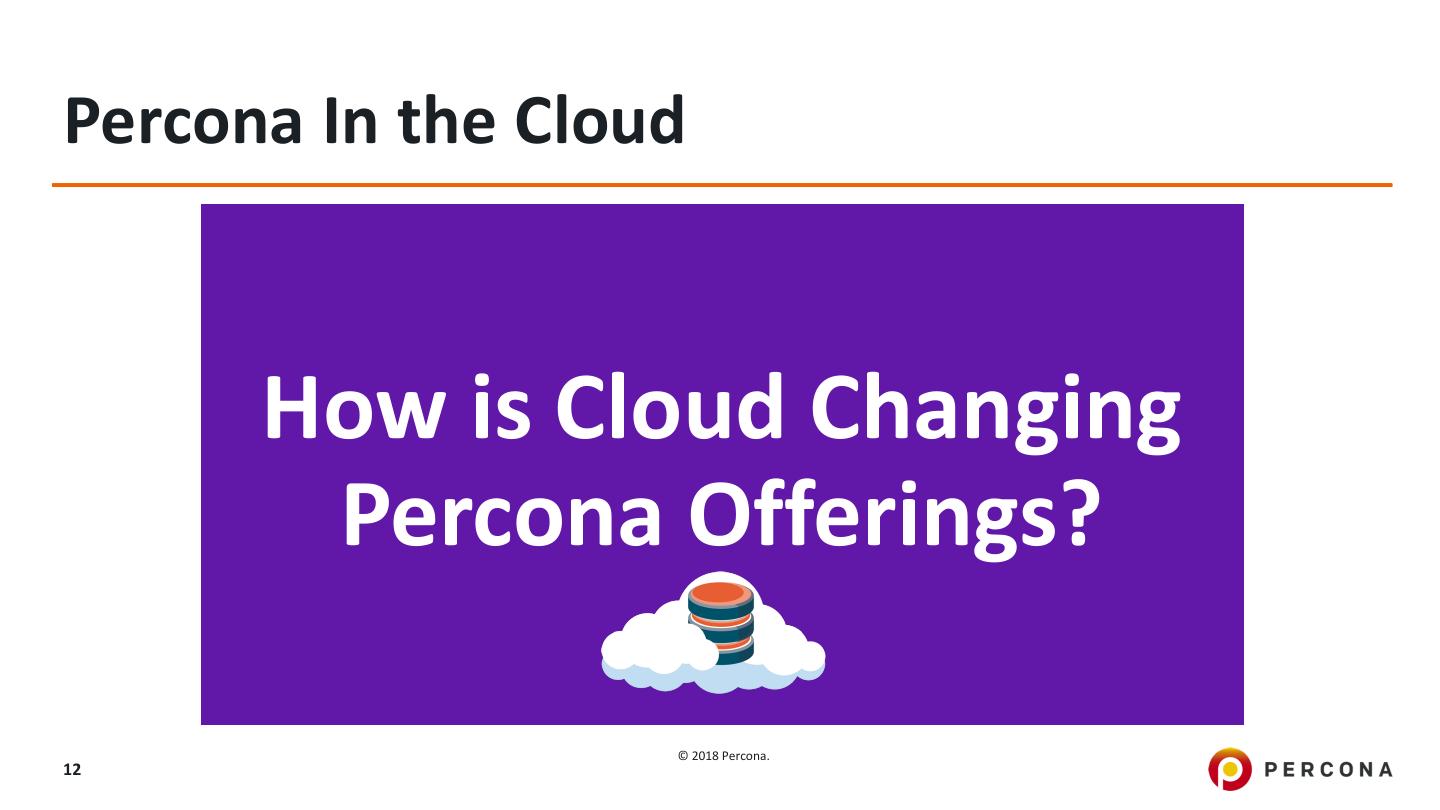 12 .Percona In the Cloud How is Cloud Changing Percona Offerings? © 2018 Percona. 12