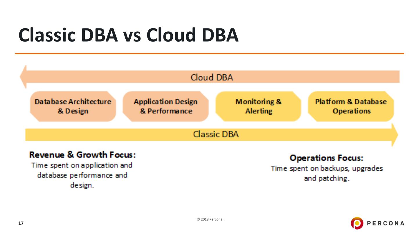 17 .Classic DBA vs Cloud DBA © 2018 Percona. 17