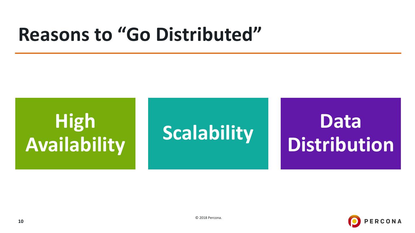 9 .With All of this ? Why “Go Distributed” ? © 2018 Percona. 9