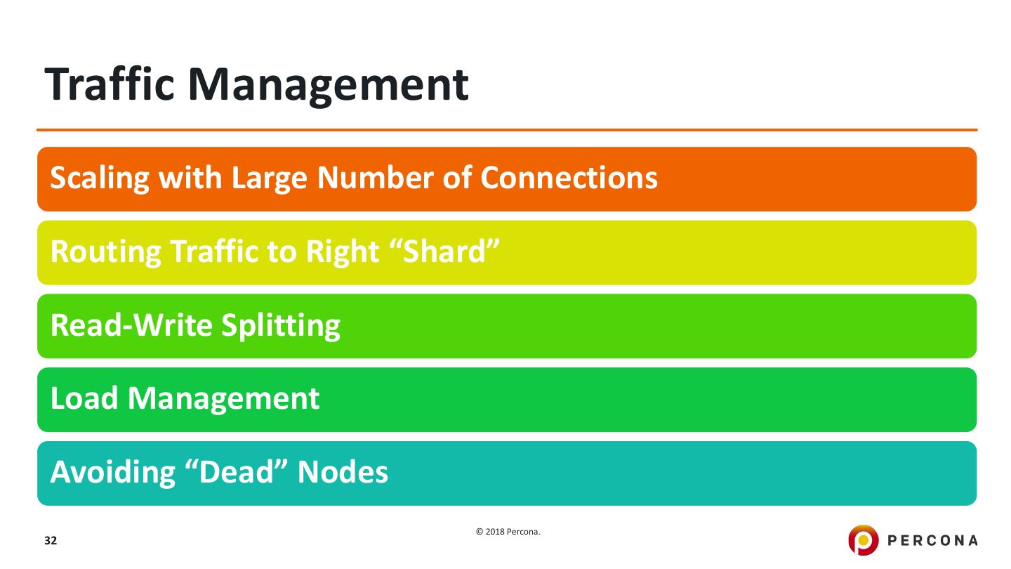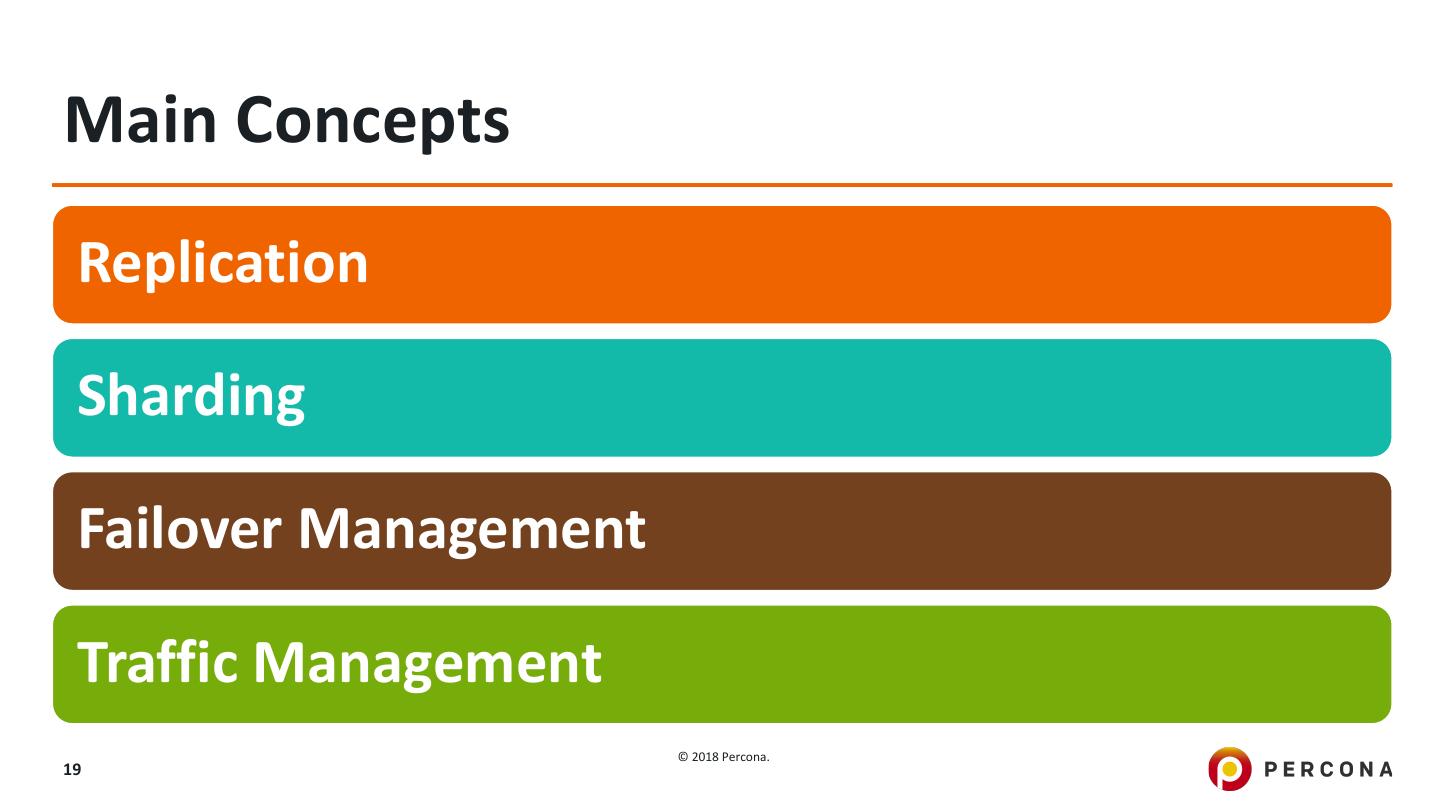 19 .Main Concepts Replication Sharding Failover Management Traffic Management © 2018 Percona. 19