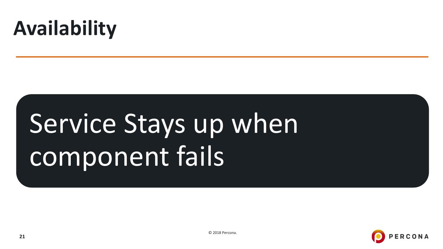 21 .Availability Service Stays up when component fails © 2018 Percona. 21