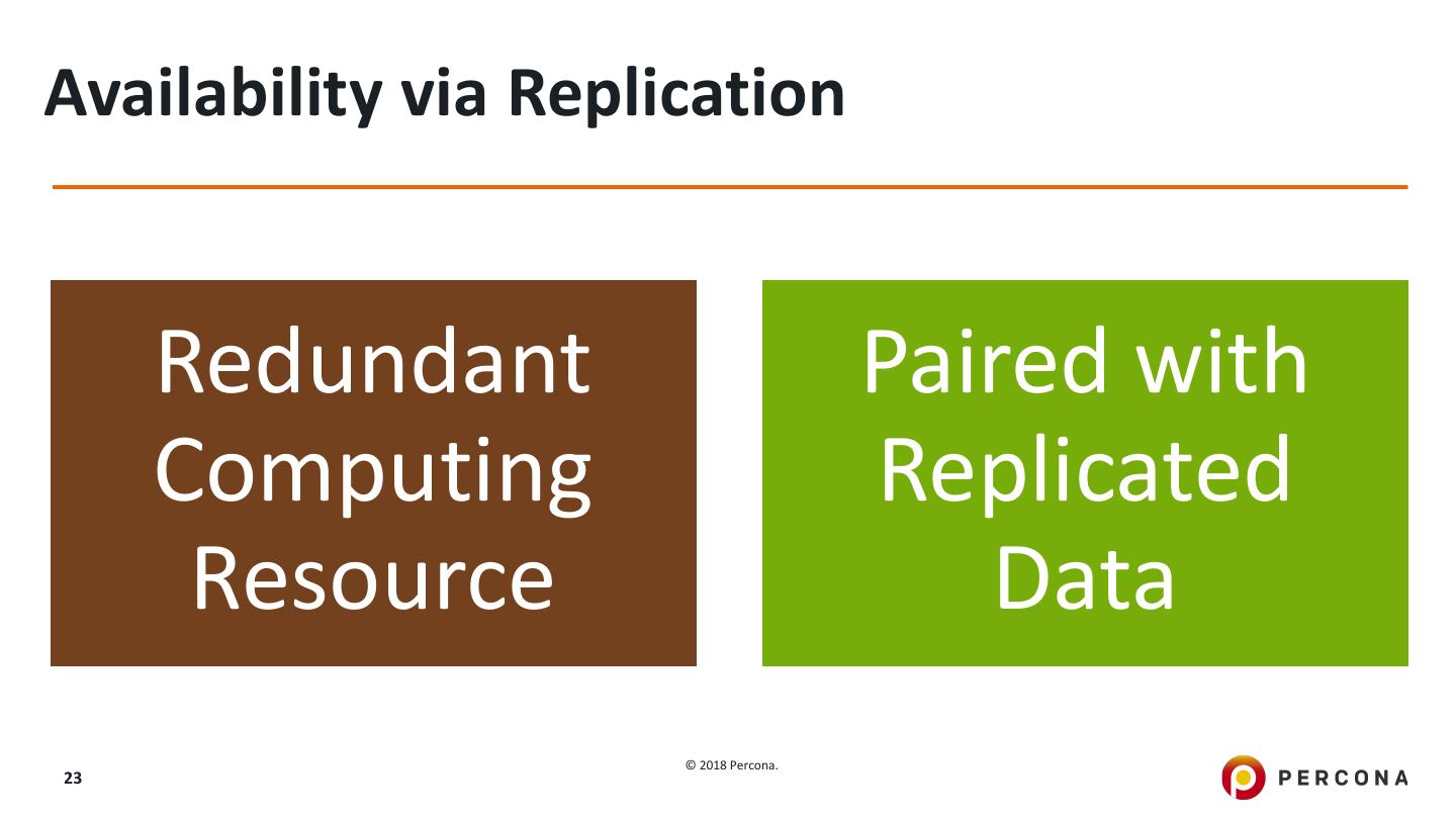 23 .Availability via Replication Redundant Paired with Computing Replicated Resource Data © 2018 Percona. 23