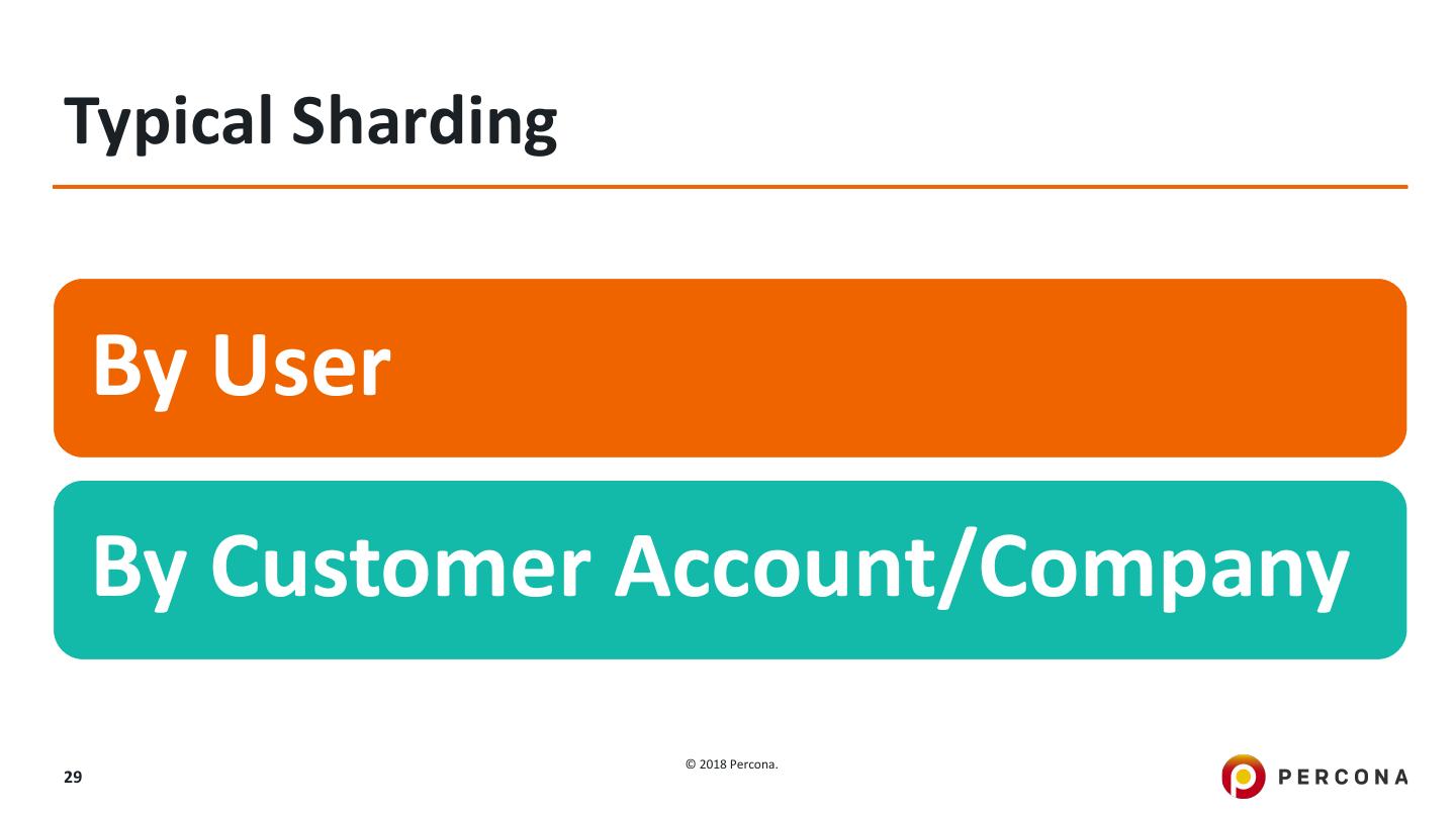29 .Typical Sharding By User By Customer Account/Company © 2018 Percona. 29