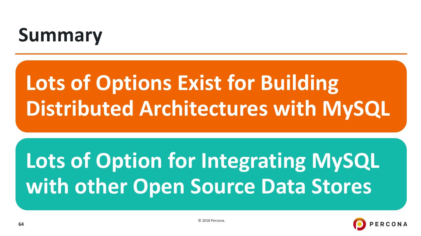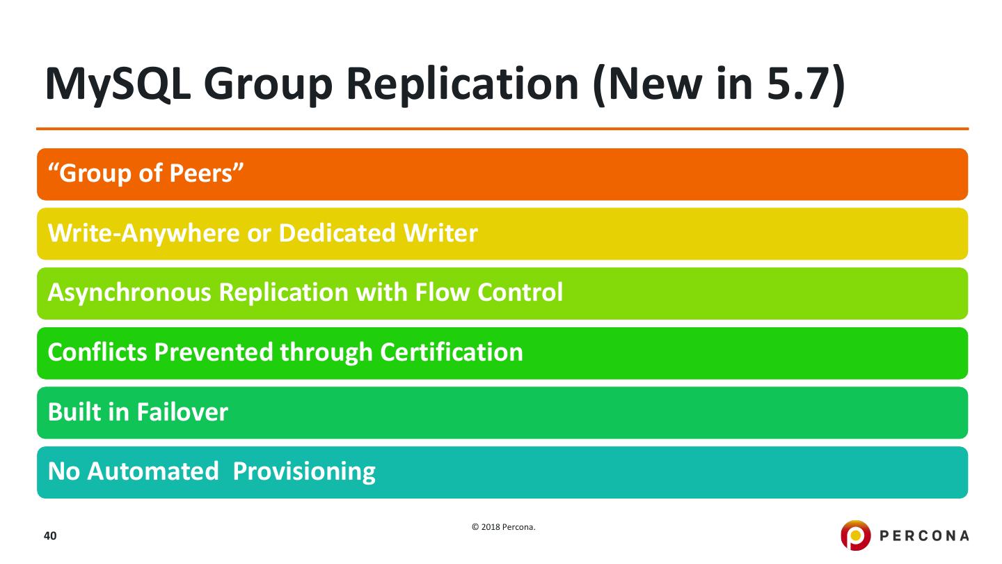 18 .Distributed Architectures with MySQL © 2018 Percona. 18