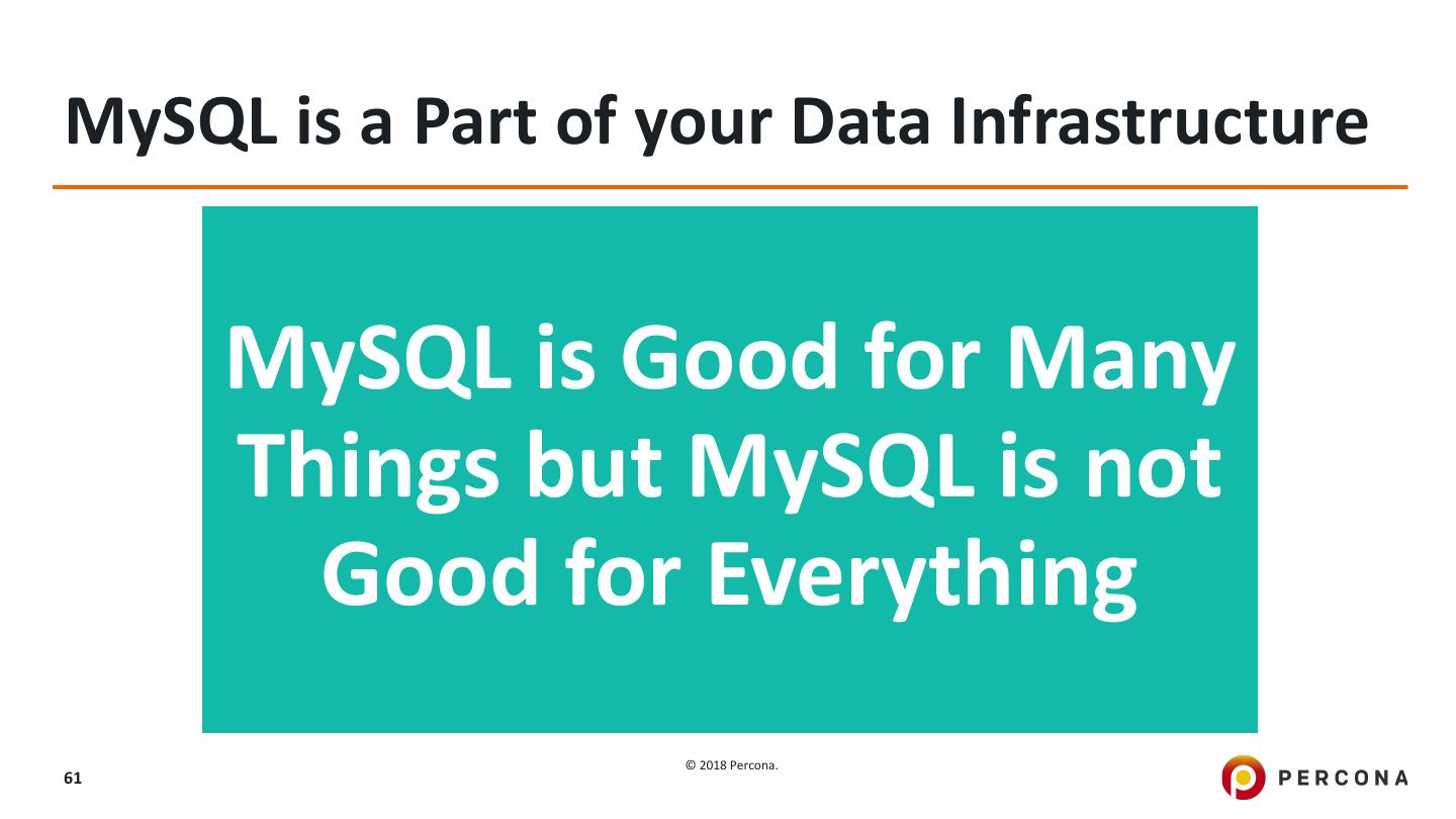 6 .Single MySQL Instance Can Do Hundreds of Thousands of Queries/Sec Tends of Thousands of Updates/Sec Traverse Tens of Millions of Rows/Sec Comfortably Handle Several TB Database size © 2018 Percona. 6
