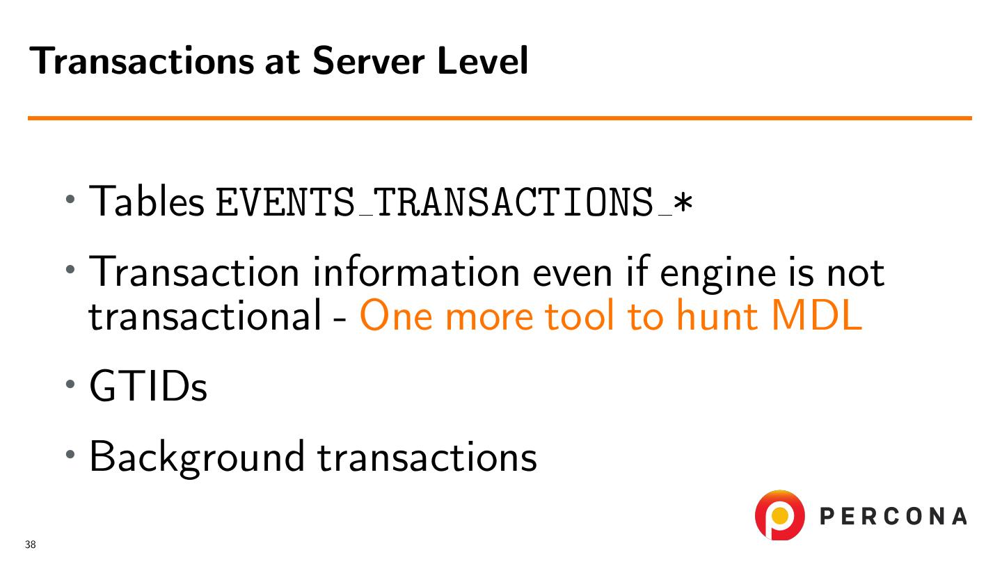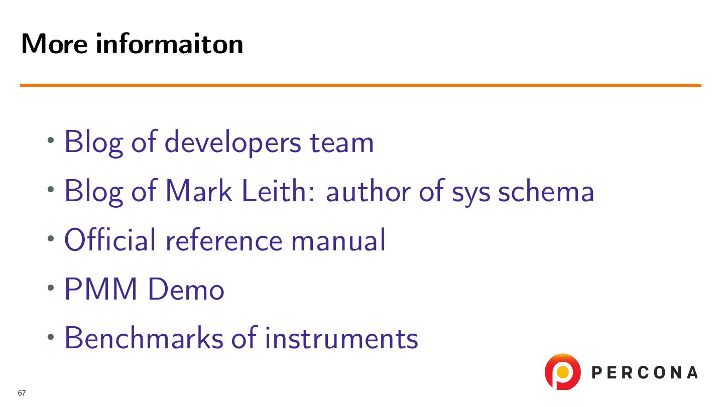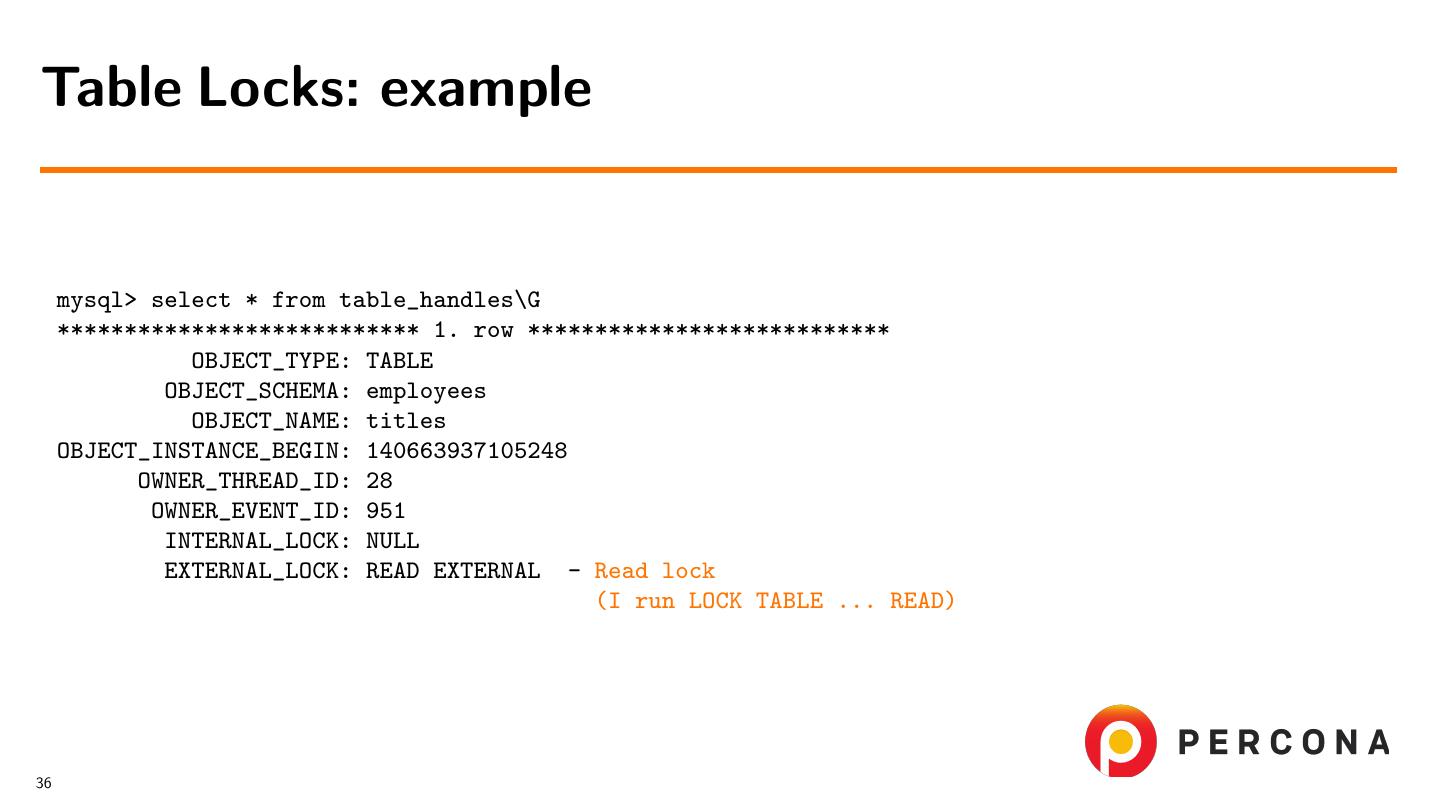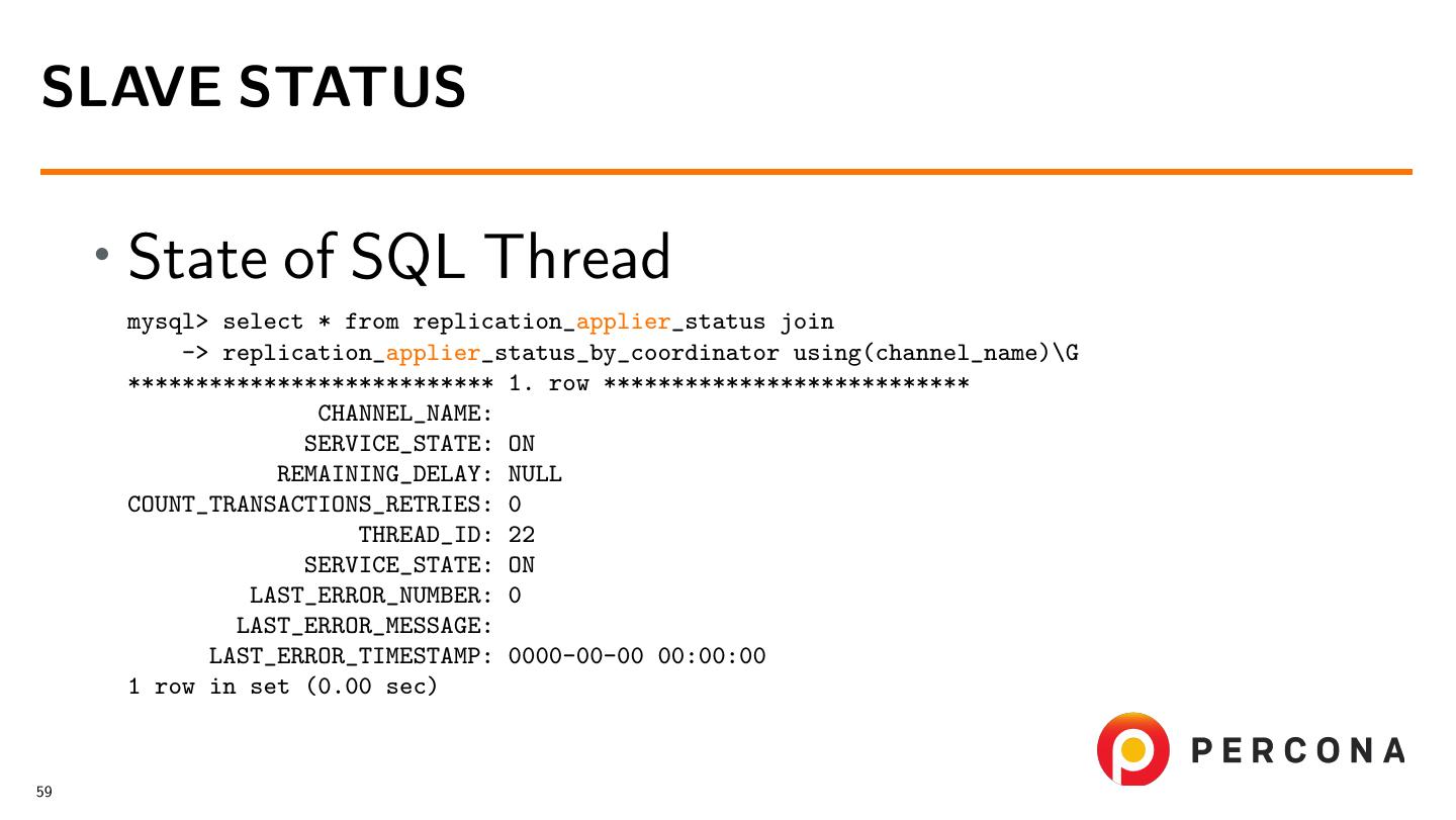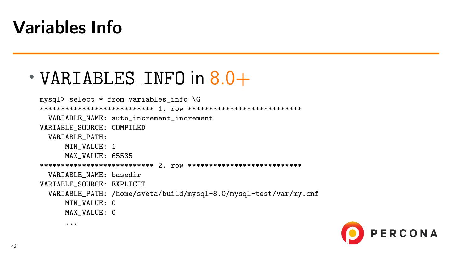 2 .Table of Contents •Overview and Configuration •Statements •Memory Usage •Locks Diagnostics •Variables and Status •Errors Summary •Connection Diagnostics •Replication •Server Internals 2