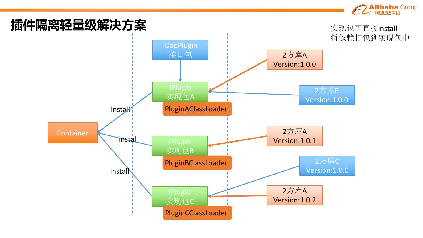 19 . install IDaoPlugin 2 A Version:1.0.0 IPlugin 2 B A Version:1.0.0 install PluginAClassLoader Container 2 A install IPlugin Version:1.0.1 B PluginBClassLoader 2 C install Version:1.0.0 IPlugin 2 A C Version:1.0.2 PluginCClassLoader