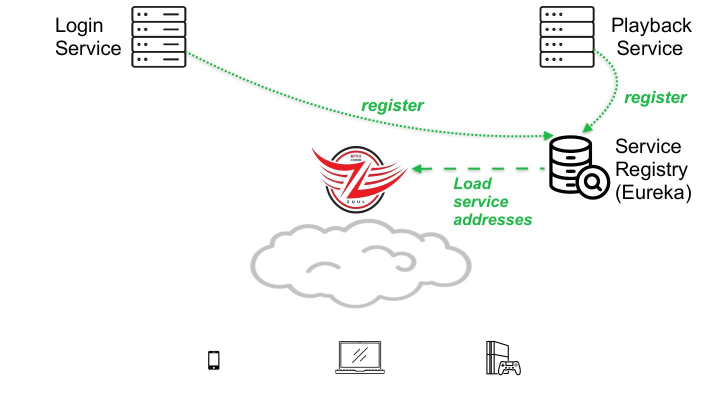 29 .Login Playback Service Service register register Service Registry Load service (Eureka) addresses