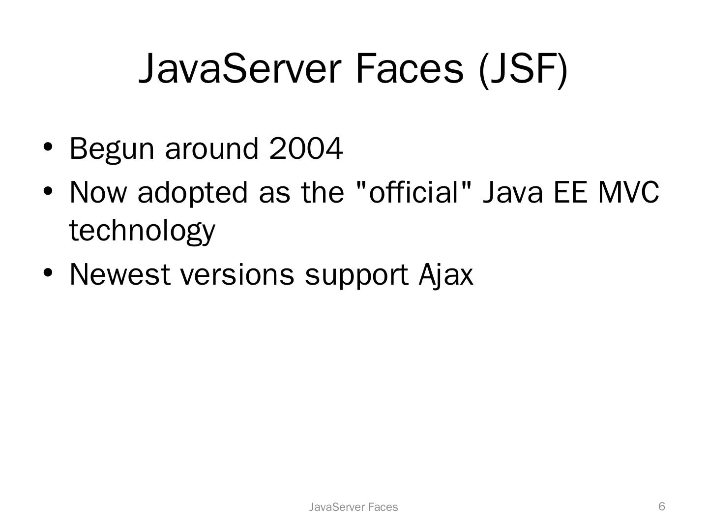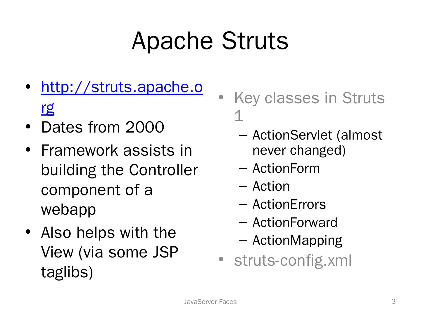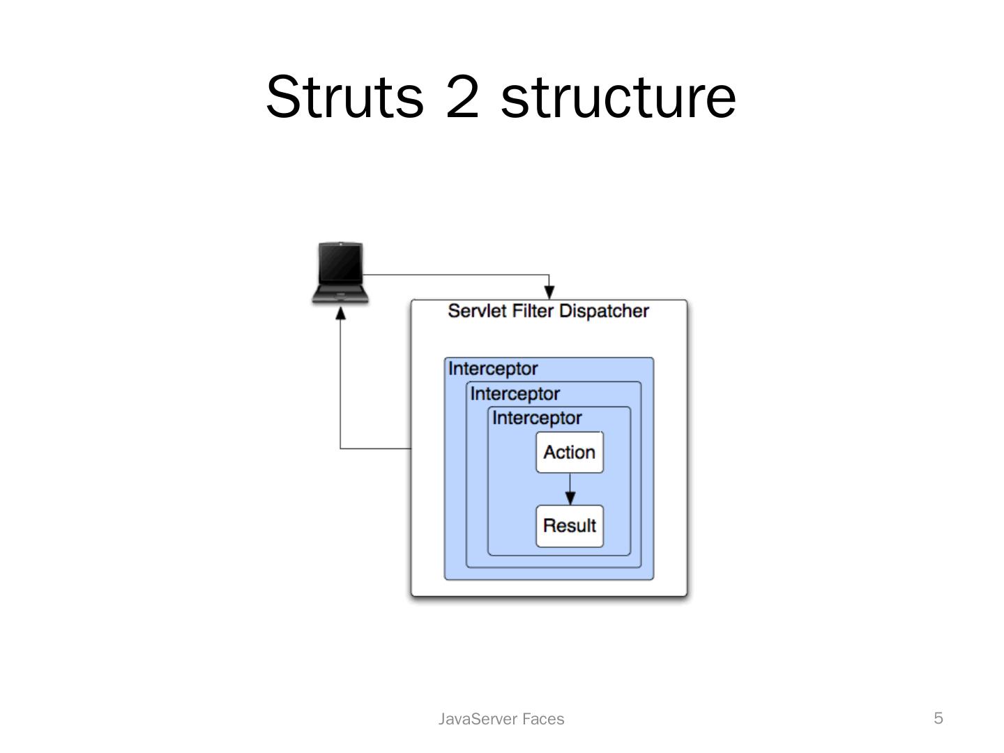 Front Controller pattern is a good thing; Can we embody those features in a common "framework"? 2. JavaServer Faces. Apache Struts. http://struts.apache.org ...