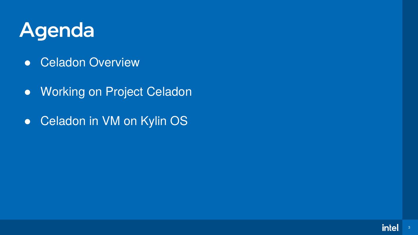3 .Agenda ● Celadon Overview ● Working on Project Celadon ● Celadon in VM on Kylin OS 3