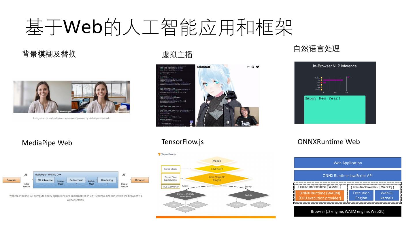 5 .基于Web的人工智能应用和框架 自然语言处理 背景模糊及替换 虚拟主播 MediaPipe Web TensorFlow.js ONNXRuntime Web