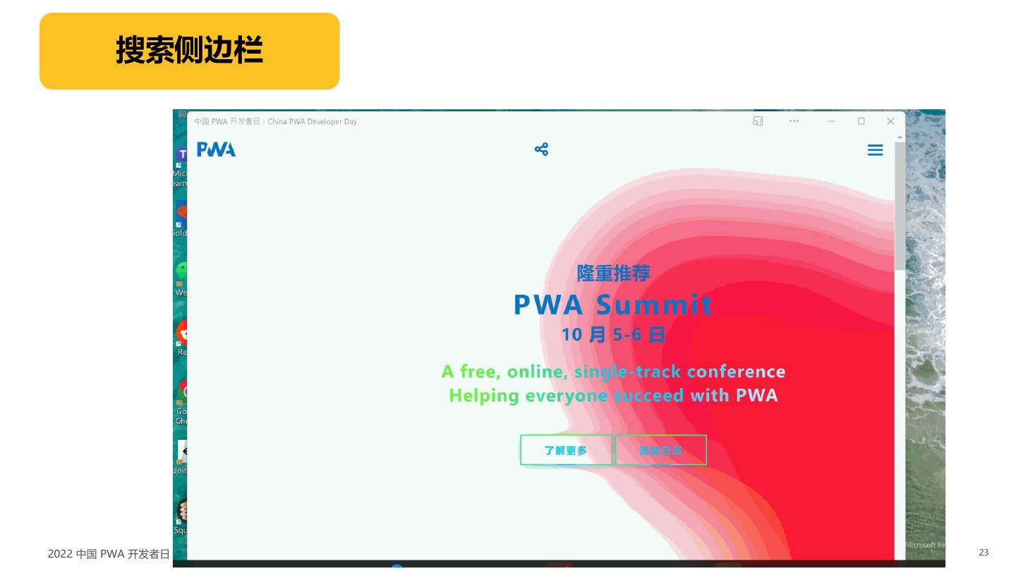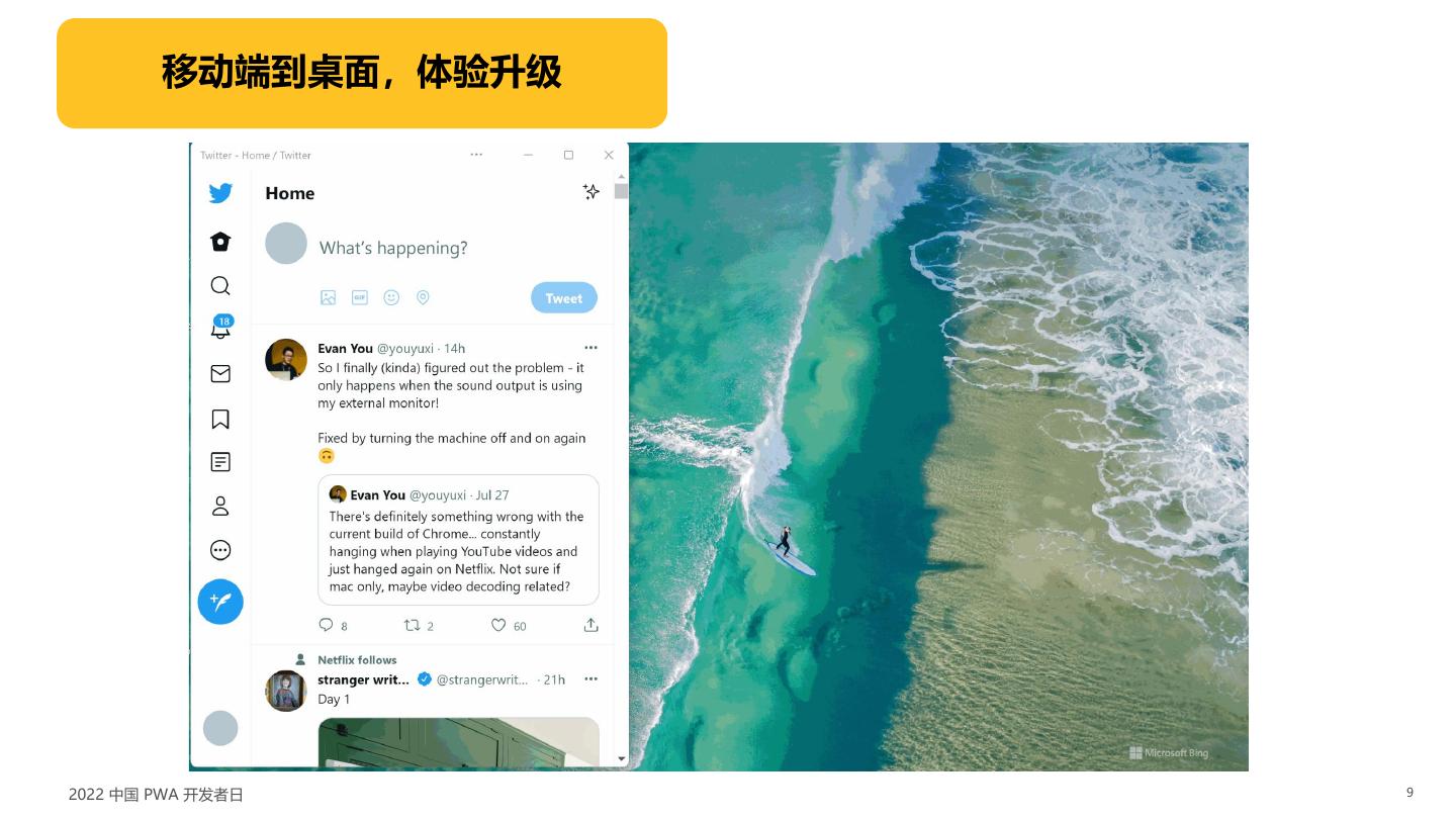 9 . 移动端到桌面,体验升级 2022 中国 PWA 开发者日 9
