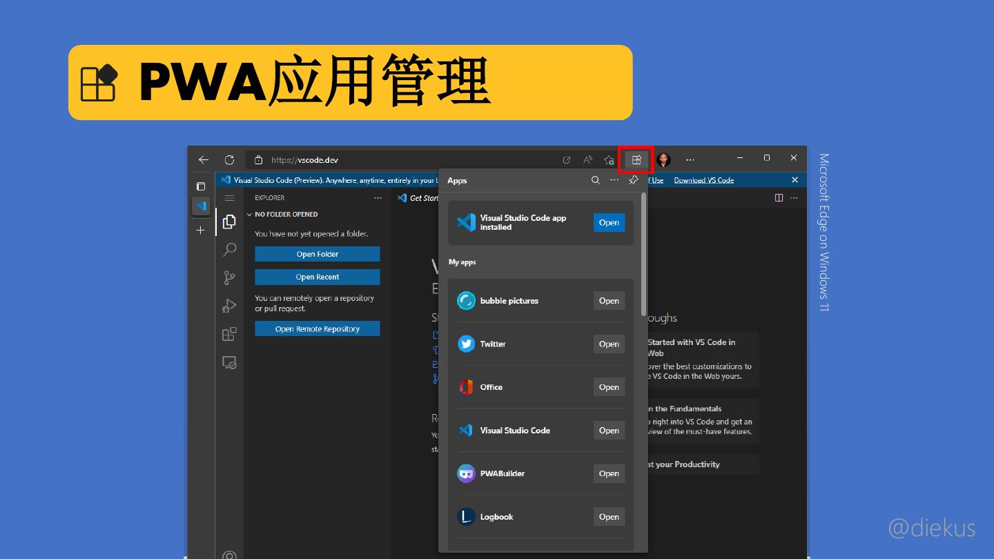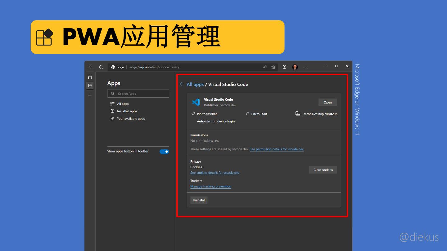19 . @diekus Microsoft Edge on Windows 11 PWA应用管理