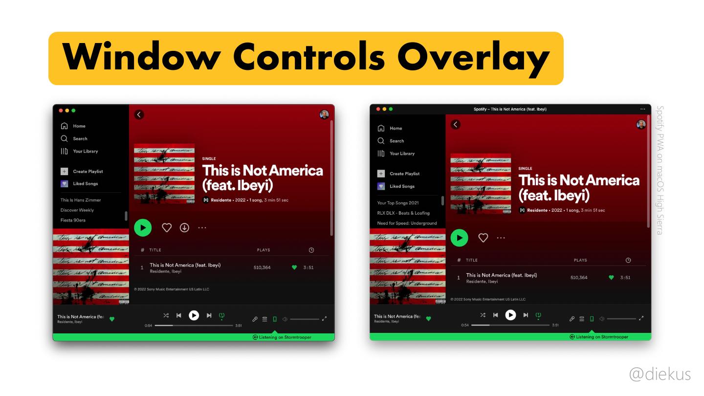 22 . @diekus Spotify PWA on macOS High Sierra Window Controls Overlay