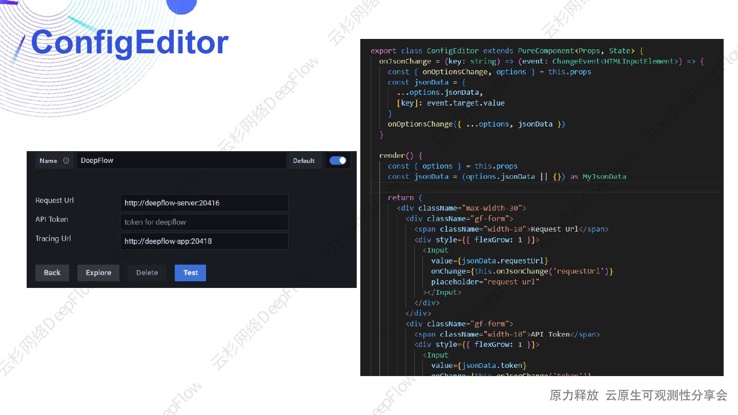 13 . 云 杉 网 络 D ee p Fl ow 云 杉 网 络 D ee Fl pF ow lo w 云 云 ConfigEditor 杉 杉 网 网 络 络 D D ee p Fl ee pF ow l ow 云 云 杉 杉 网 网 络 络 D pF ee lo pF w l ow 云 云 杉 杉 网 网 络 络 D D ee p Fl ee pF ow l ow 云 云 杉 杉 网 网 络 D ee pF l ow 云 杉 网 络 D ee pF 原力释放 云原生可观测性分享会 l o