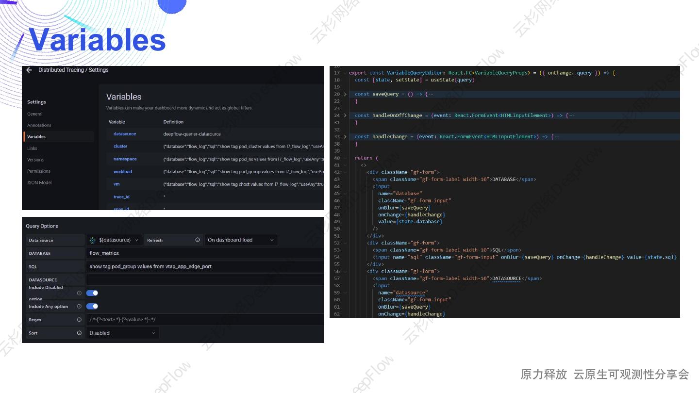 15 . 云 杉 网 络 D ee p Fl ow 云 杉 网 络 D Variables ee Fl pF ow lo w 云 云 杉 杉 网 网 络 络 D D ee p Fl ee pF ow l ow 云 云 杉 杉 网 网 络 络 D pF ee lo pF w l ow 云 云 杉 杉 网 网 络 络 D D ee p Fl ee pF ow l ow 云 云 杉 杉 网 网 络 D ee pF l ow 云 杉 网 络 D ee pF 原力释放 云原生可观测性分享会 l o