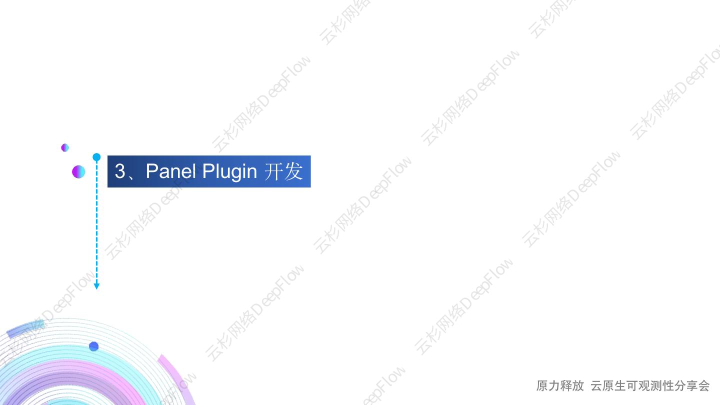 25 . 云 杉 网 络 D ee p Fl ow 云 杉 网 络 D ee Fl pF ow lo w 云 云 杉 杉 网 网 络 络 D D ee p Fl ee pF ow l 3、Panel Plugin 开发 ow 云 云 杉 杉 网 网 络 络 D pF ee lo pF w l ow 云 云 杉 杉 网 网 络 络 D D ee p Fl ee pF ow l ow 云 云 杉 杉 网 网 络 D ee pF l ow 云 杉 网 络 D ee pF 原力释放 云原生可观测性分享会 l o
