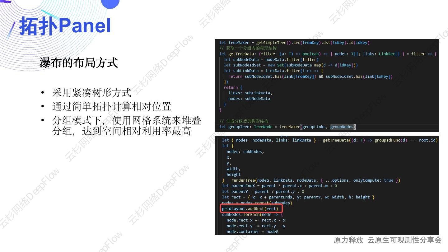 29 . 云 杉 网 络 D ee p Fl ow 云 杉 网 络 D ee 拓扑Panel Fl pF ow lo 瀑布拓扑 w 云 云 杉 杉 网 网 络 络 D D ee p Fl ee pF ow l ow 云 云 杉 杉 网 网 络 络 D pF ee lo pF w l ow 云 云 杉 杉 网 网 络 络 D D ee p Fl ee pF ow l ow 云 云 杉 杉 网 网 络 D 瀑布拓扑-分组 ee pF l ow 云 杉 网 络 D ee pF 原力释放 云原生可观测性分享会 l o