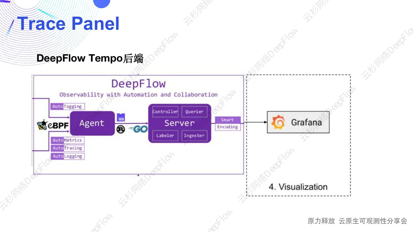 3 . 云 杉 网 络 D ee p Fl ow 云 杉 网 络 D ee Fl pF ow lo w 云 云 杉 杉 网 网 络 络 D D ee p Fl ee pF ow l ow 云 云 杉 杉 网 网 络 络 D pF ee lo pF w l ow 云 1、DeepFlow 搭配的 Grafana 插件 杉 云 网 杉 络 网 D 络 ee D p Fl ee pF ow l ow 云 云 杉 杉 网 网 络 D ee pF l ow 云 杉 网 络 D ee pF 原力释放 云原生可观测性分享会 l o